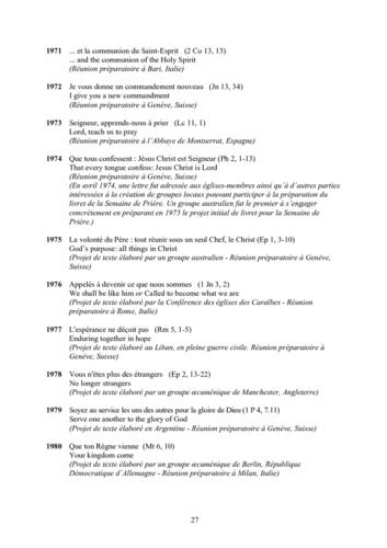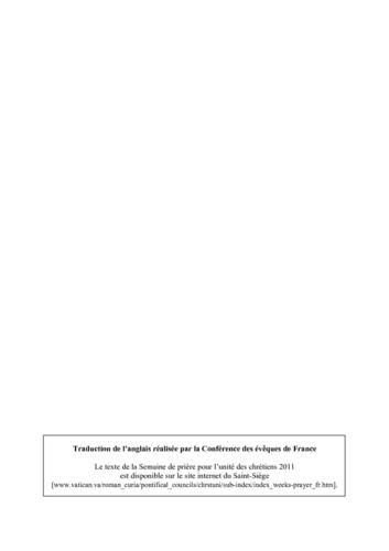 Vous trouverez le matériel élaboré pour la préparation de la « Semaine 2010 » sur le site Internet du Conseil pontifical pour la promotion de l’unité des chrétiens (cliquer ici ), ou la brochure annuelle en français éditée et publiée conjointement par la Commission Foi et Constitution (COE) et le Conseil pontifical pour la promotion de l'unité des chrétiens (Eglise catholique romaine) en fichier joint. Vous la trouverez en plusieurs langues sur le site Internet du Conseil oecuménique des Eglises (cliquer ici ).