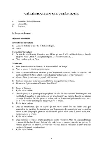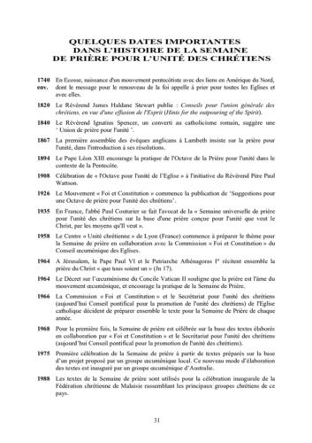- Célébration oecuménique le mercredi 19 janvier 2011 à 18h30 à l'Immaculée Conception.