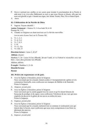 - Une célébration pour les jeunes et les adultes, en l'église Notre-Dame le jeudi 20 janvier 2011 à 20h00, suivie d’un pot de l’amitié.
